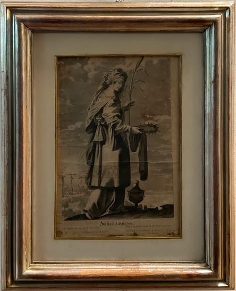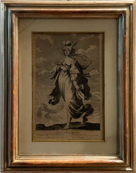 Gilles Rousselet (Parigi 1610-1686) Gruppo di quattro incisioni all'acquaforte su carta raffiguranti le Sibille (cm 35x22,5) in cornici (gravi difetti)