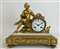 Pendola in bronzo dorato e marmo sormontata da figura di gentiluomo a tutto tondo. Quadrante in smalto bianco a numeri romani, suoneria delle ore e mezze su campanello. Francia, ultimo quarto del secolo XIX (cm 30,5x29x12) (difetti)