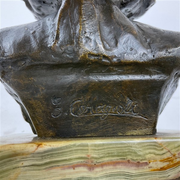 Giorgio Ceragioli "Busto di ragazza con cuffia" scultura in bronzo (h cm 21) su