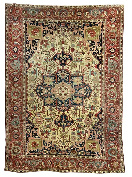 Lotto 1431 | Tappeto Heritz, Persia, fine secolo XIX. Decoro con grande medaglione blu con p