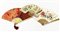 Lotto di tre ventagli con stecche in legno intagliato, laccato e dorato con pagine in carta e tessuto. Dipinti in policromia a volatili e fiori (difetti)
