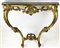 Console in legno intagliato, traforato e dorato a due gambe a volute contrappos