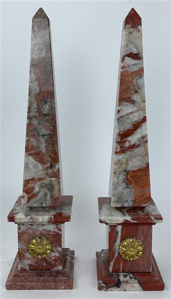 Lotto 1447 | Coppia di obelischi in marmo, applicazioni in bronzo a rosette (h. cm 31,5) (di