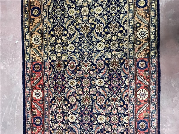 Lotto 1449 | Tappeto passatoia Hamadan, Persia, secolo XX. Decoro Herati su fondo blu (cm 48