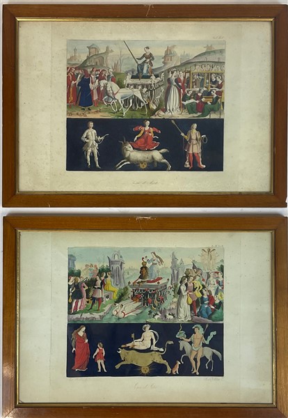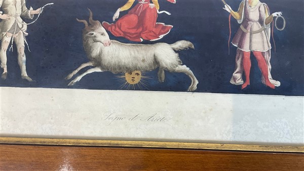 Ferdinando Poletti (secolo XIX) Segno di Toro-Segno di Ariete, coppia di incisioni all'acquaforte su carta acquarellata (cm 32x49) In cornici (difetti)