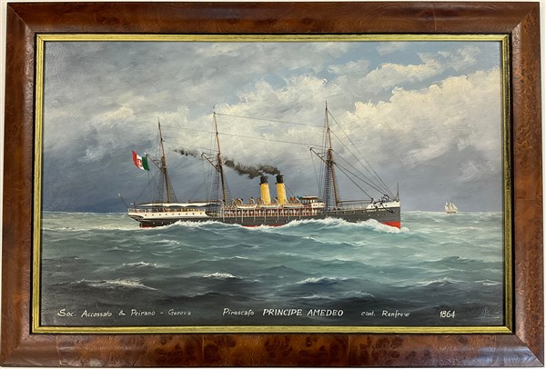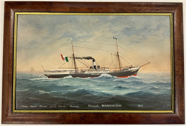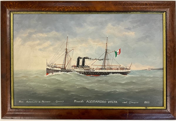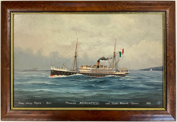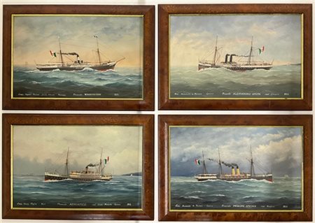 Ignoto, secolo XX. Quattro dipinti su compensato raffiguranti diversi piroscafi, in