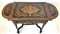 Tavolo ad alette lastronato, filettato e intarsiato a volute e motivi floreali