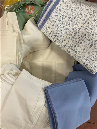 Lotto composto da numerosi tessuti e tovaglie di varie fogge e dimensioni, in c