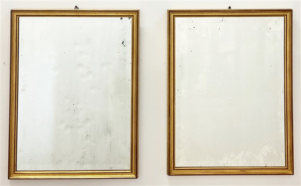 Lotto composto da una specchiera di forma rettangolare con cornice in legno decorata da bordo intagliato, unito a due specchiere con cornice dorata (cm max 136x78) (difetti)