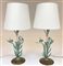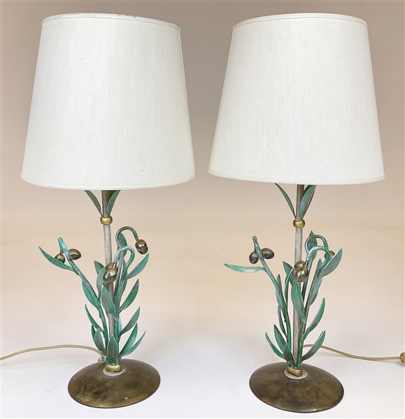 Coppia di lampade da tavolo in metallo dipinto a foggia di rami d'ulivo su base