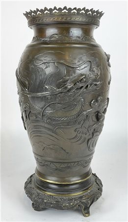 Vaso in bronzo decorato con draghi Giappone, periodo Meiji secolo XIX (h. 40cm