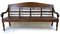 Divano in legno intagliato con schienale traforato a cartelle, braccioli a ricc