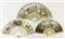 Lotto di tre ventagli con stecche in osso inciso, traforato e dipinto con pagin