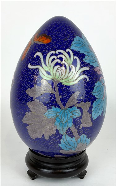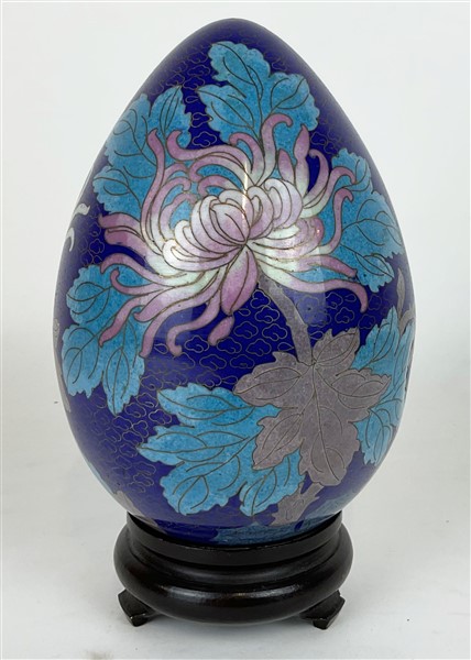 Uovo in smalti cloisonnè con base in legno