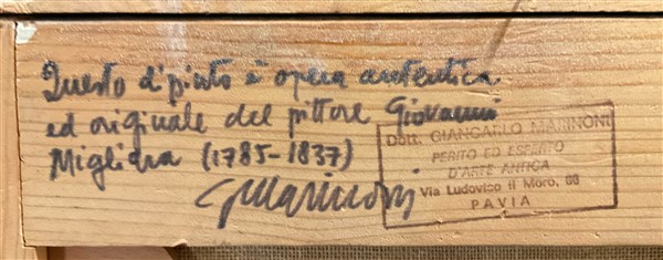 Al retro sul telaio: iscrizione per autentica e timbro