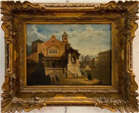 Ignoto lombardo del secolo XIX "Scorcio veneziano" olio su tela (cm 30x40) Al