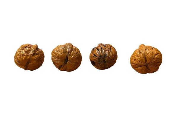 Gruppo di quattro noci incise Cina, secolo XIX. (d.4,5cm)(lievi difetti)