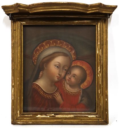 Ignoto, dipinto raffigurante "Madonna con Bambino" olio su tela applicata su ta