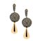 Coppia di orecchini in oro giallo con due boules in diamanti taglio brillante per complessivi ct 3,0 ca e due gocce pendenti in oro