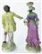 Manifattura del secolo XX. Coppia di figure in porcellana policroma profilata i