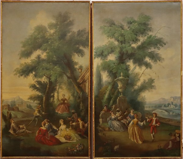 Scuola francese della fine del secolo XVIII "Scene galanti all'aperto" Due d