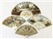 Arte del secolo XIX. Lotto di quattro ventagli con stecche in osso inciso, traf
