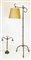 Lotto composto da una piantana tripode in metallo ad altezza regolabile, unita a una lampada da tavolo a due luci con presa ad anello e paralumi in vetro bianco a forma di fiore (h. max cm 138) (difetti e rotture)