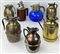 Gruppo di sette diversi thermos in materiali vari, alcuni con parti in metallo argentato (difetti)