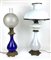 Lotto composto da due lampade in vetro montato in metallo. Elettrificate in epoca posteriore (h. max cm 67) (difetti e rotture)