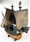 Modello di veliero in legno intagliato e in parte dipinto con vele in cuoio (l.