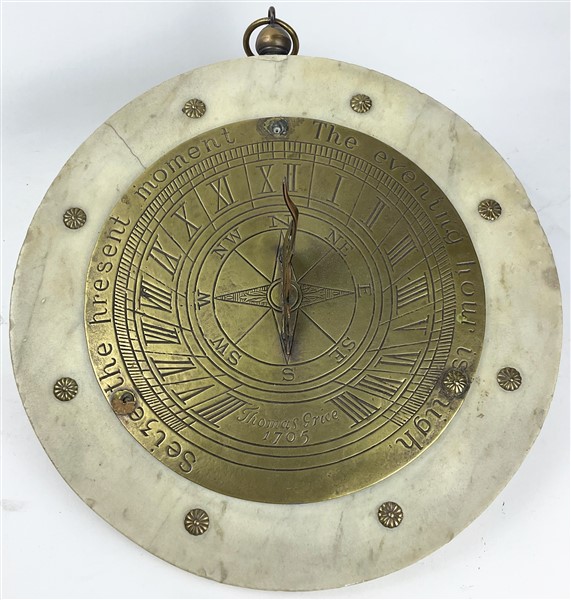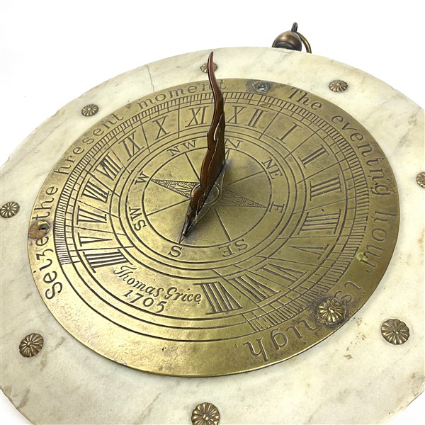 Meridiana in ottone su base in marmo circolare da un modello di Thomas Grice del 1705 (h cm 42) (gravi difetti)