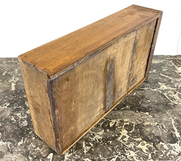Cassettone lastronato e filettato in legni vari. Fronte a due cassetti e tre ti