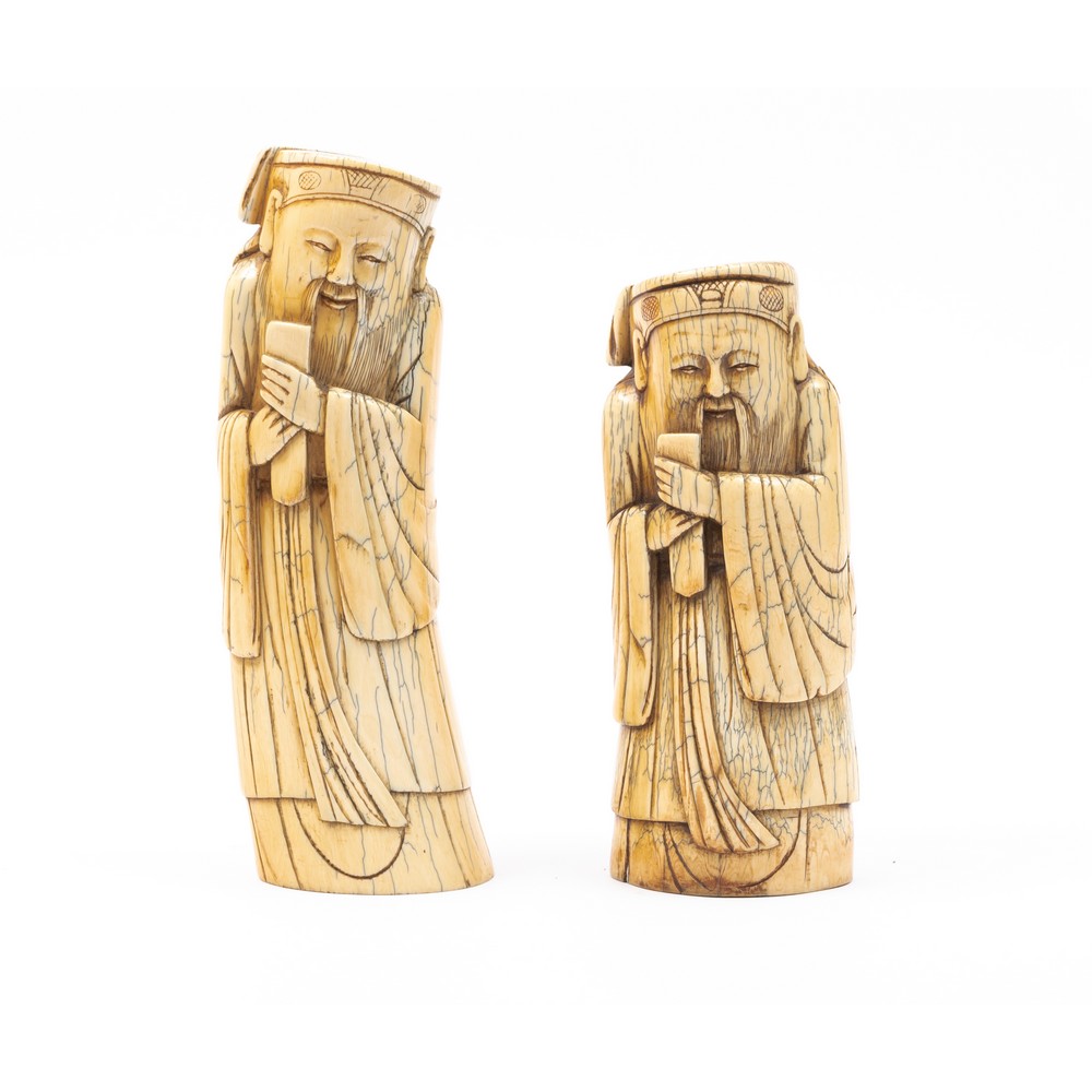 Coppia di sculture realizzate con Zanne di Mammut raffigurante "Saggi".