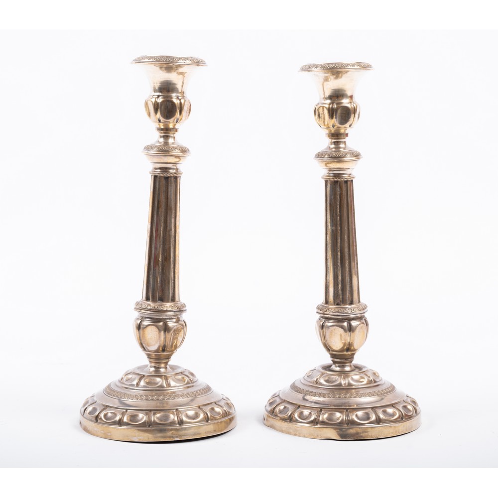 Coppia monocera in argento 950 sbalzato a mano, zecca di Genova. Reca iniziali argentiere GFB (ammaccature).