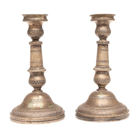 COPPIA MONOCERA in argento sbalzato e cesellato. Argentiere Pampaloni Ermindo - Firenze (g. 281).