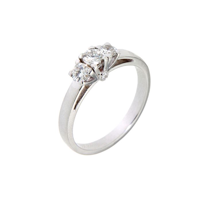 Anello in oro bianco, modello trilogy, con tre diamanti taglio brillante per complessivi ct 0,55 ca