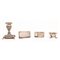 Monocera stile Impero in argento, tabacchiera in argento 925 firmata Ortega Mexico, porta cerini in argento sterling con monogramma A.C. (gr. 177) e saliera in metallo (usure).
