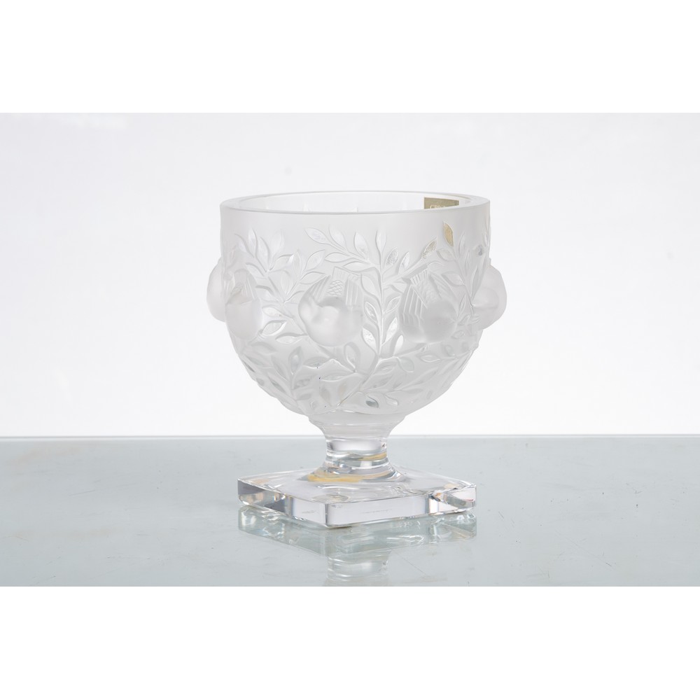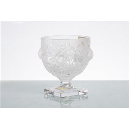 Vaso modello "Elisabeth" in cristallo parzialmente satinato con decorazioni a rilievo di uccelli tra i rami.
