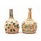 COPPIA DI BOTTIGLIE in ceramica smaltata e decorata a motivo fogliaceo (usure).
