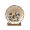 Centrotavola in maiolica policroma decorato con volatile (usure e piccoli restauri).