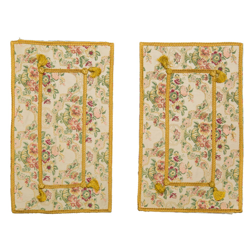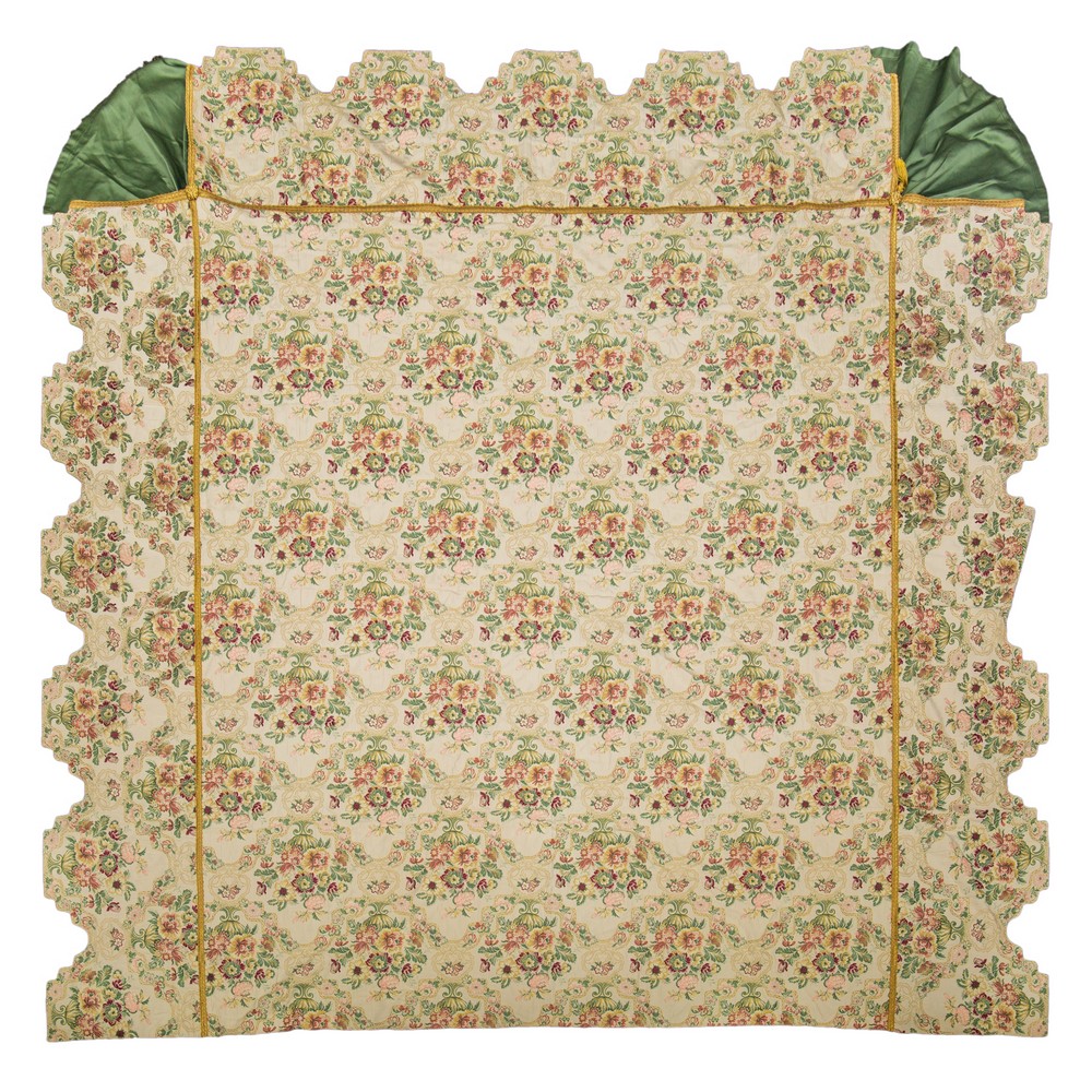 COPRILETTO e due copricuscini in cotone fantasia a motivo floreale (macchie).