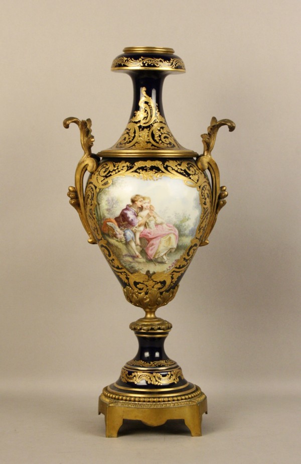 Firmato. Vaso in porcellana di Sevres con finiture in bronzo dorato raff....