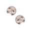 Coppia di orecchini in oro rosa e bianco, a lobo, con due quarzi rosa e diamanti taglio brillante per complessivi ct 0,30 ca a suggerire l'immagine di una coccinella stilizzata,