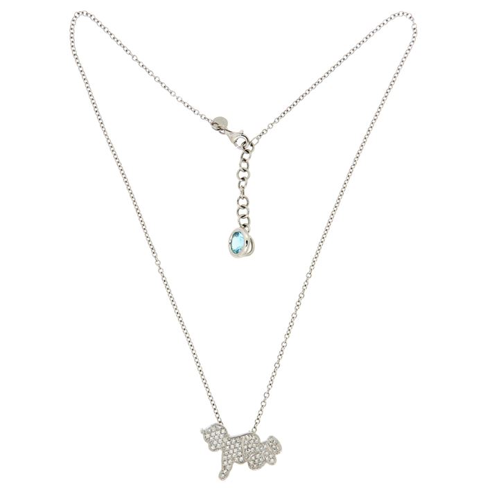 Catena con ciondolo in oro bianco a forma di bebé che gattona, interamente in pavé di diamanti taglio brillante per complessivi ct 0,85 ca