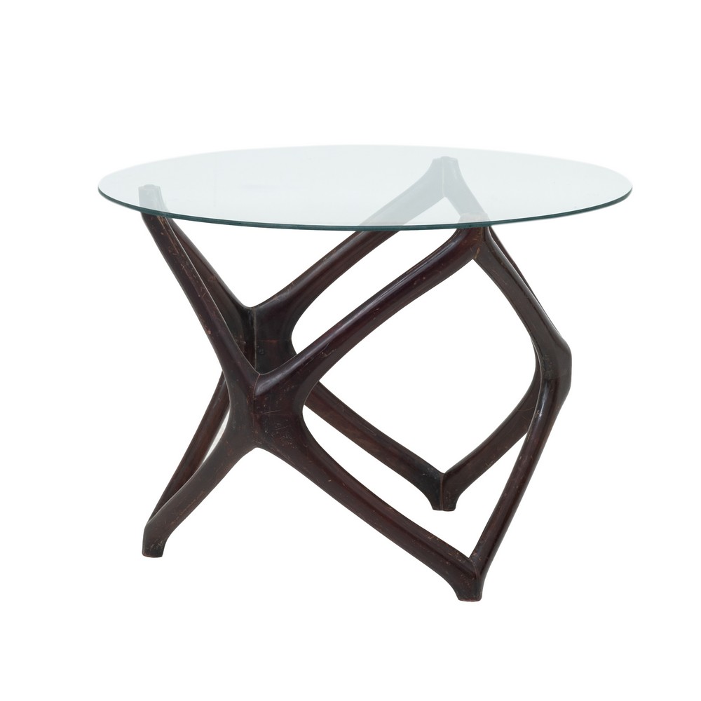 TAVOLINO basso in legno ebanizzato con piano in vetro.