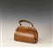 Borsa vintage in coccodrillo chiaro a forma di bauletto.