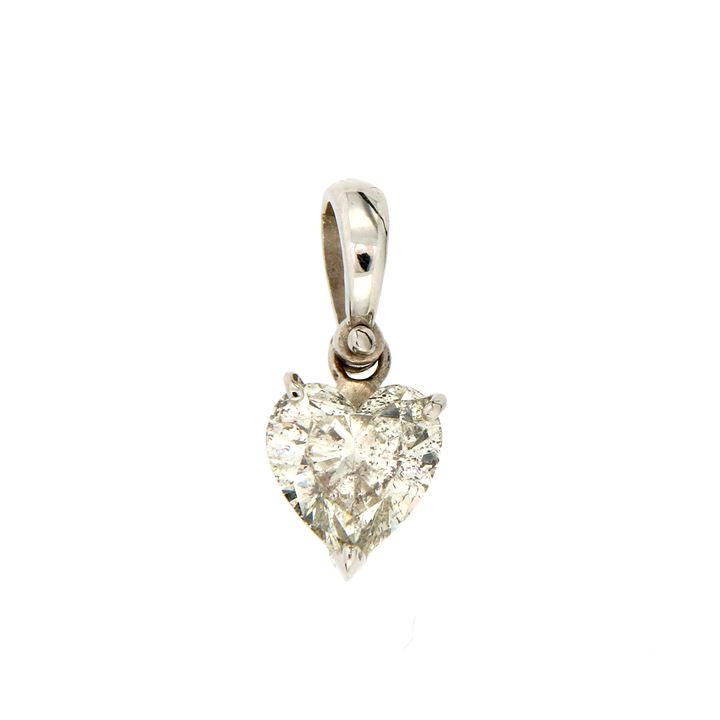 Ciondolo in oro bianco con diamante taglio a cuore di ct 0,80 ca