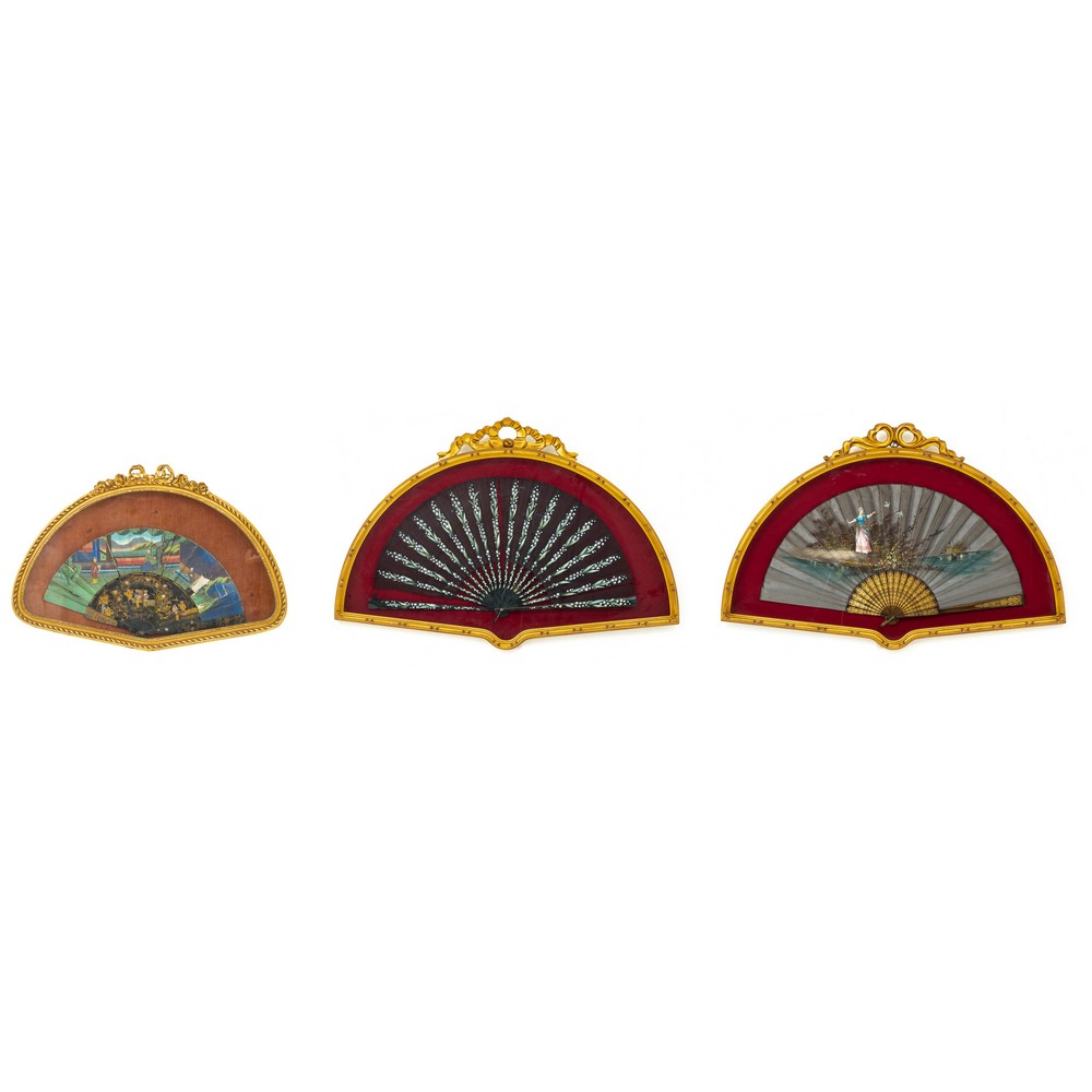 Lotto 576 | TRE VENTAGLI ENTRO VENTAGLIERE IN LEGNO DORATO