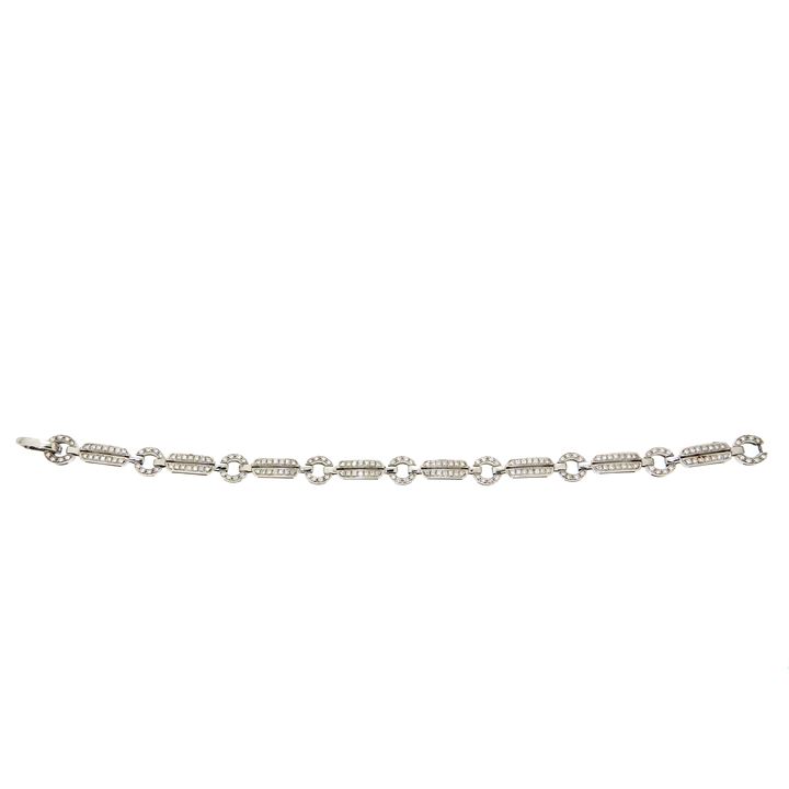 Bracciale in oro bianco composto da anelli alternati a doppie barrette in diamanti taglio brillante per complessivi ct 0,95 ca