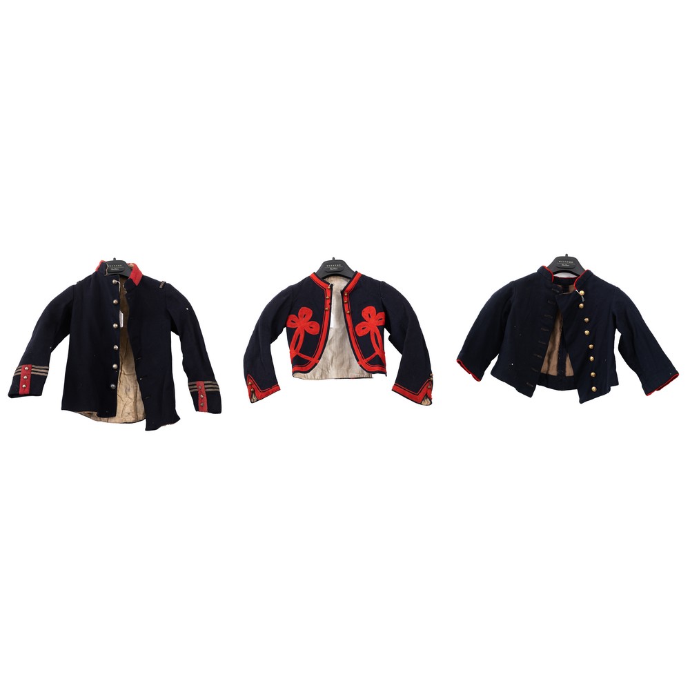 TRE GIACCHE da uniforme da bambini per manifestazioni e rappresentazioni militari (usure e mancanze).